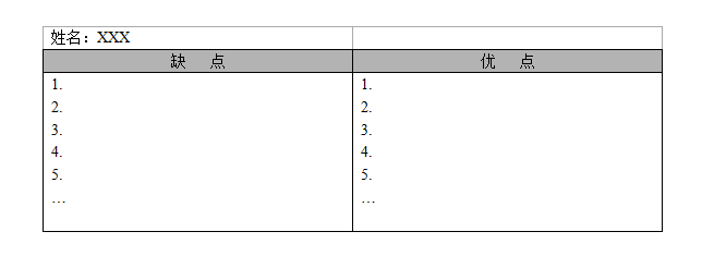 - 第三步,在左邊“缺點(diǎn)”欄中,寫下全部你不喜歡他的理由或他身上全部缺點(diǎn);